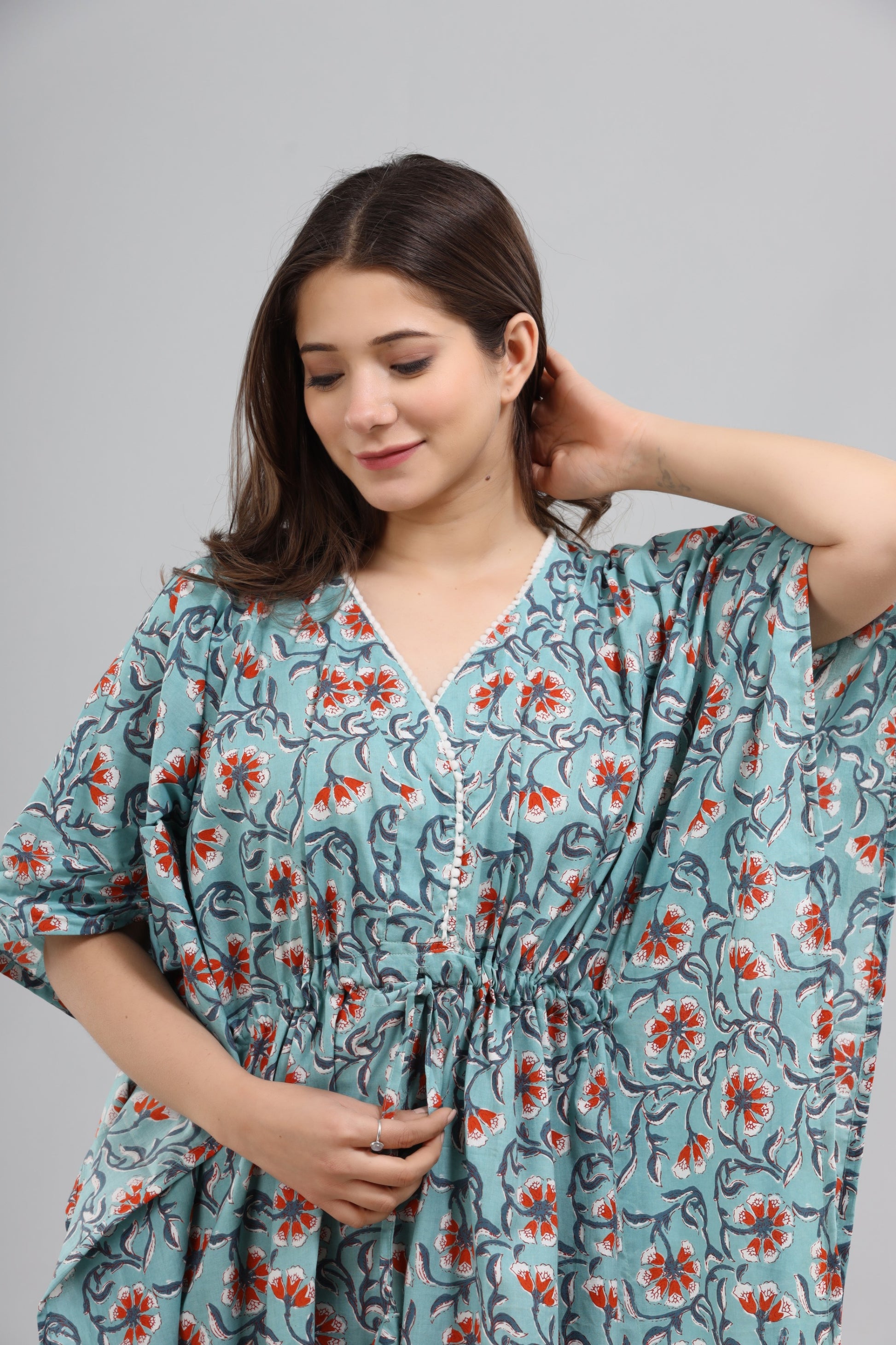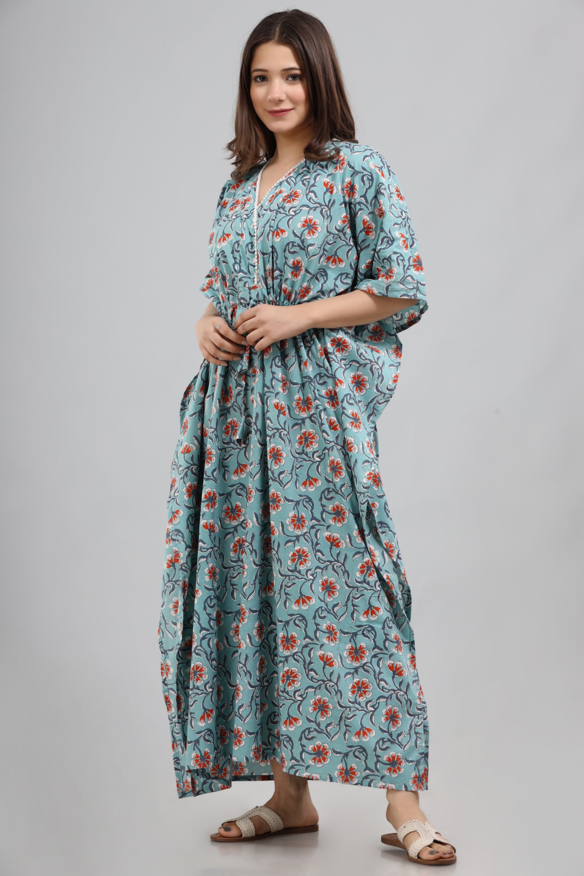 Blue orange floral kaftan