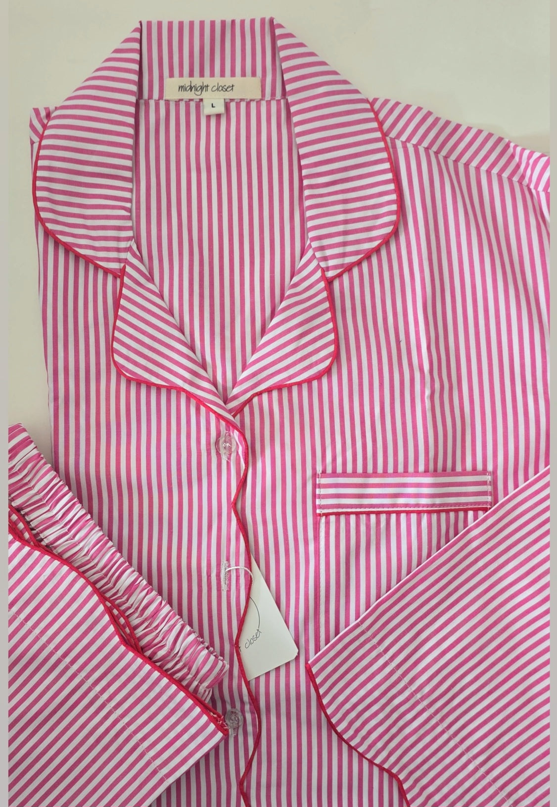 Made with pure cotton and a dash of sass, this striped pink pajama set is your go-to for fun, flirty lounging. Think candy vibes with comfort goals π¬π