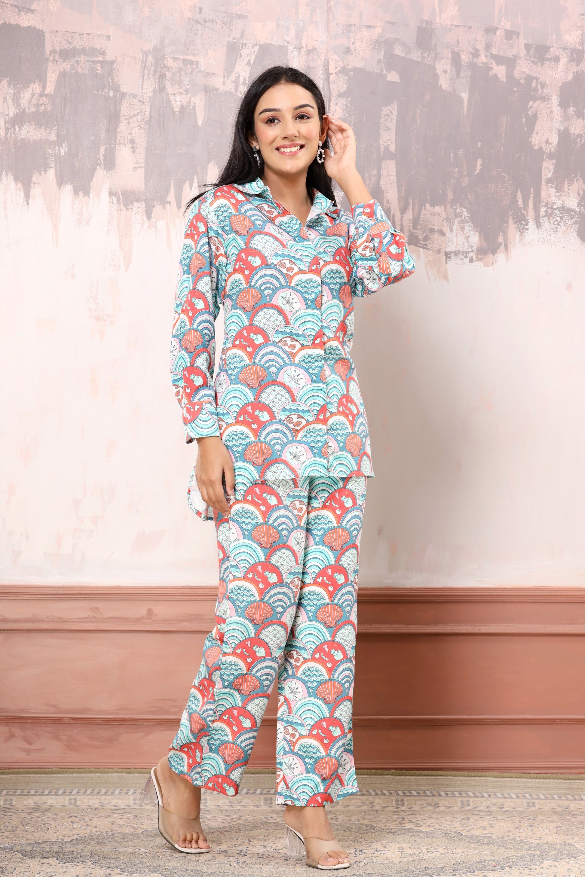 The OG of co-ord sets, a simple shirt and pant style. There is no easier way to get dressed than with coordinates this season. elegant print combined with comfort and style!